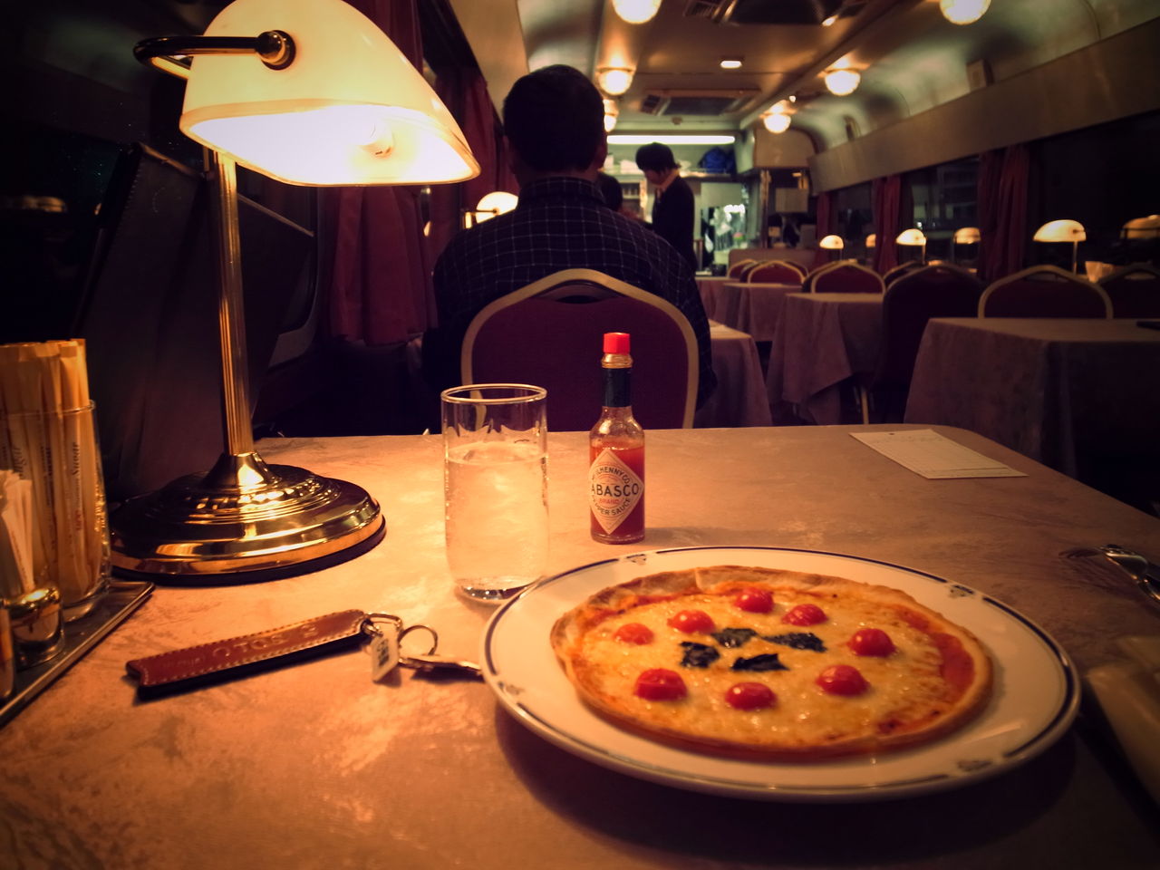 北斗星にはロビーやシャワー室、食堂があって予約がなくても利用ができる。食堂に関しては9時以降くらいからフリーのお客さんにも解放され、ピザやパスタ、お酒なんかが楽しめる。