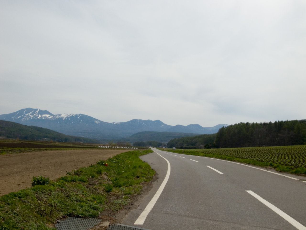 だだっ広い平地にできた小さな丘をちょこちょこ越えていく感じ。あの山の向こうに道が続いています。